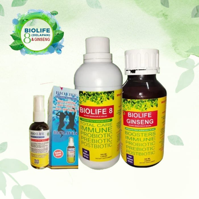 Biolife 8 dan Biolife Ginseng adalah suplemen dengan kandungan bahan-bahan berkualitas tinggi seperti ginseng korea. ginseng jawa, kunyit putih, dan air kelapa. Menggabungkan probiotik, prebiotik, postbiotik, dan simbiotik untuk regenerasi sel dan perbaikan jaringan dan Membantu menghambat pertumbuhan sel kanker.